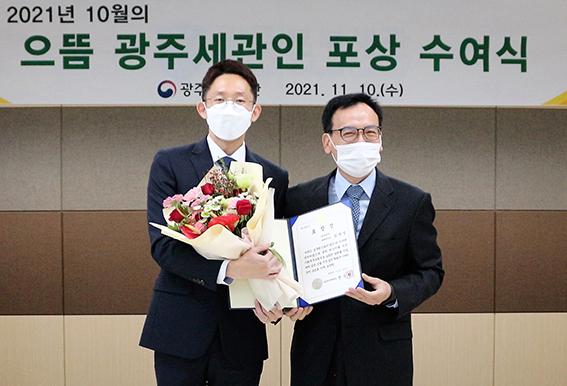 광주본부세관(세관장 정승환)은 10일 베트남산 사회복무요원복을 국산으로 둔갑시켜 납품한 업체를 적발한 대전세관 임관영 관세행정관을 10월의 ‘으뜸 광주세관인’으로 선정했다고 밝혔다. (사진=광주세관 제공). 2021.11.10.