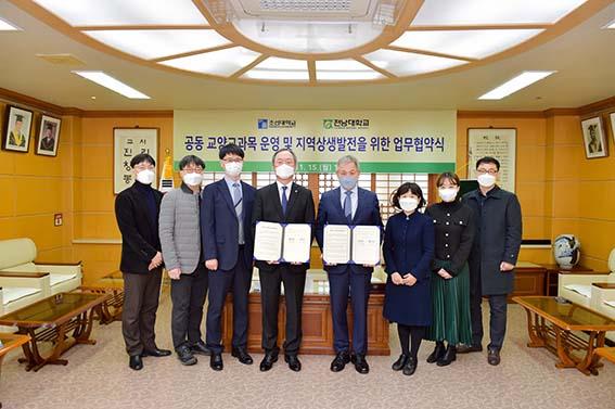 조선대학교가 전남대학교와 공동 교양교과목 운영을 비롯, 지역상생발전을 위한 업무협약(MOU)을 체결했다.