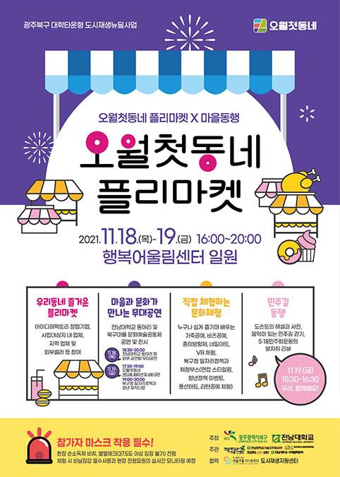 광주시 북구는 오늘과 내일 이틀 동안 북구 행복어울림센터(용봉로 105), 5·18 제1호 사적지인 전남대학교 정문 일원에서 ‘오월첫동네 플리마켓&마을동행’ 행사를 개최한다고 18일 밝혔다.