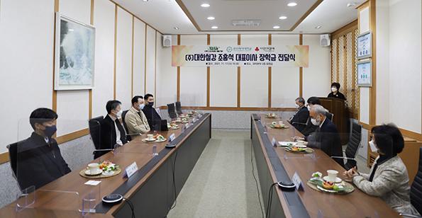 광주여자대학교는 지난 17일 본관 2층 회의실에서 ㈜대한철강 조홍석 대표이사의 기탁 장학금 전달식을 개최했다고 밝혔다. /이동기 기자