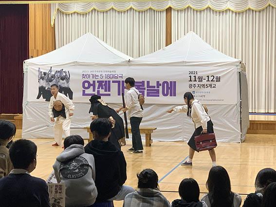 25일 시교육청에 따르면 이번 공연은 5·18민주화운동에 대한 관내 교원 및 학생들의 이해를 돕기 위해 기획됐다. 코로나19를 예방하고 학생과의 접근성을 높이기 위해 극단이 직접 학교를 방문해 강당(체육관)에서 공연을 펼친다.