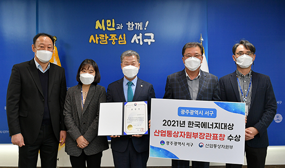 광주 서구는 산업통상자원부 주관 올해 한국에너지대상에서 에너지 효율 향상에 기여한 공로로 지방자치단체로는 유일하게 산업통상자원부 장관 기관 표창을 받았다고 29일 밝혔다.