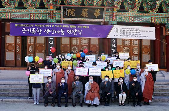 정광고가 자매결연 학교인 선화여고와 함께 지난 27일 화엄사 화엄원에서 영·호남이 함께 하는 ‘2021 국민통합 생명나눔 사랑의 헌혈증서 전달식’을 개최했다고 29일 밝혔다.