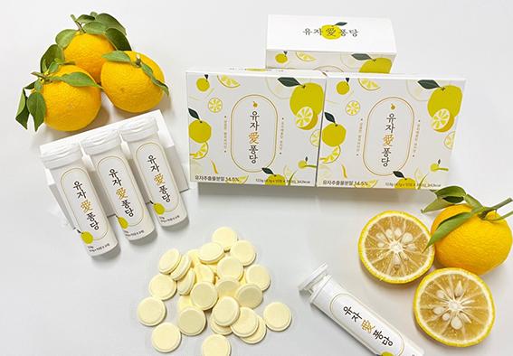 전남농업기술원 과수연구소에서는 남녀노소 누구나 즐겨 먹을 수 있고 휴대와 음용이 간편한 '유자愛퐁당' 제품을 개발해 시장 진출 방안을 모색하고 있다.