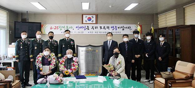 여수고등학교에서 지난달 26일 육군참모총장 명의의 6·25 참전용사 및 전국 최초 자원입대 학도병 참전 명패 증정식이 열렸다.