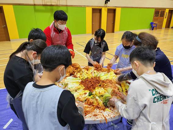 지난 9월 학교 텃밭에 모종을 심고 정성스럽게 가꾸어 속이 꽉 찬 배추를 직접 수확했다. 그리고 학부모와 전 교직원과 힘을 합쳐 겨울 동안 먹을 김치를 정성스럽게 만들어 교육공동체 나눔 활동을 실시했다.