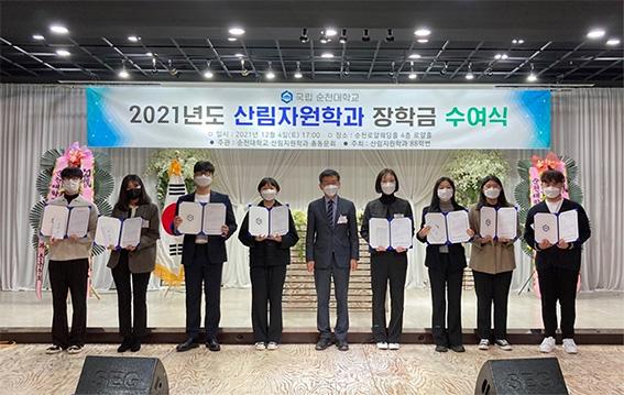 순천대 산림자원학과 총동문회는 올해 장학금 전달식을 일상 회복에 맞춰 추진하고, 학년별 성적우수자, 사회배려자, 외국 유학생까지 수혜 대상을 확대하여 지난 4일 순천 로얄관광호텔에서 장학금을 전달했다. 총동문회는 2015년부터 7년 동안 재학생 30명에게 3천만 원을 전달해왔다.