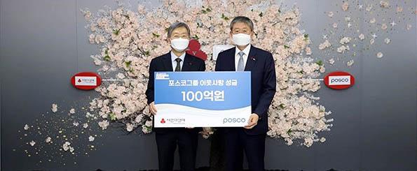 포스코그룹이 이웃돕기 성금 100억 원을 사회복지공동모금회에 기탁했다.