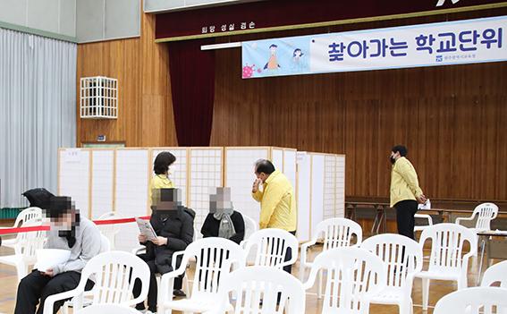장휘국 교육감이 16일 오후 1시 ‘찾아가는 학교 단위 백신 접종’ 첫 실시 학교인 신가중을 방문해 현장을 격려했다.