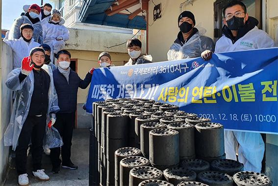 이날 순천로타리클럽 회원 20여명은 코로나19 장기화로 인해 더욱 어려운 환경에 놓인 취약계층 3가구에 연탄 1000장과 8가구에 이불 8세트를 직접 전달했다.