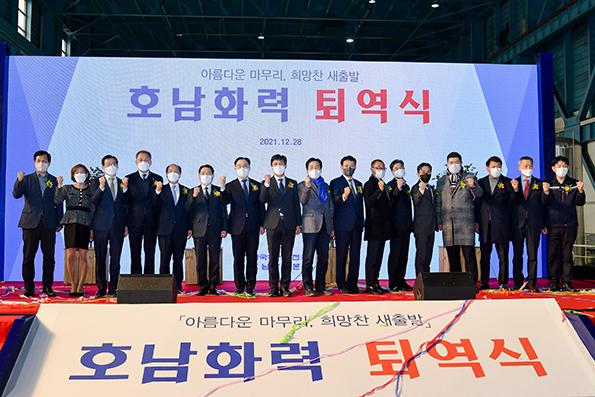 문 장관은 "호남화력은 친환경 발전단지로 변모해 지역경제와 국가 전력수급에 계속 기여할 것"이라며 "호남화력 퇴역은 마침표가 아니라 이음표"라고 강조했다.