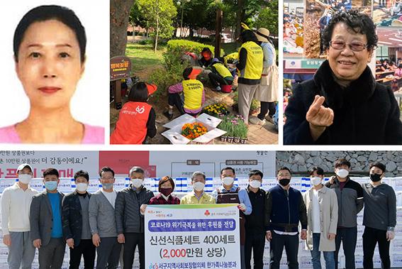 (왼쪽부터)정영지 씨, 상무2동 자원봉사캠프, 김순자 씨, 한가족나눔분과(아래). /서구청 제공