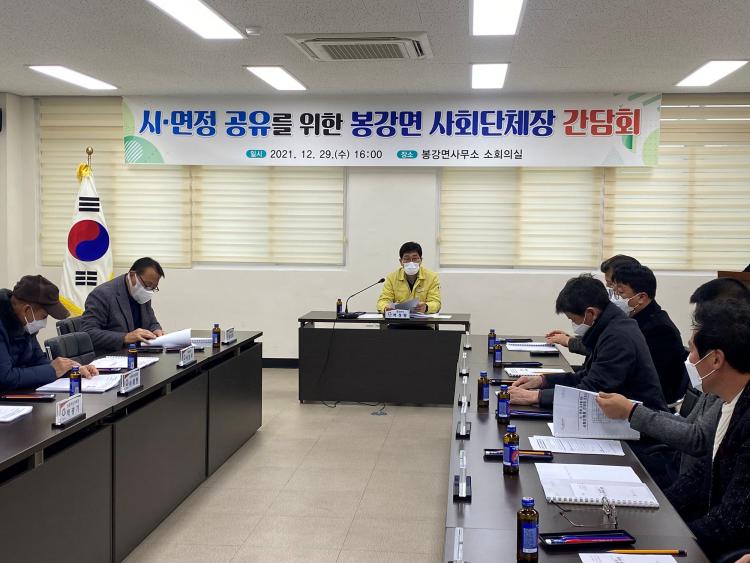 이번 간담회는 발전협의회, 청년회, 주민자치위원회 등 봉강면 사회단체장 13명이 참석했으며, 시정 주요 홍보사항과 2021년 주요 사업 추진성과를 공유했다.