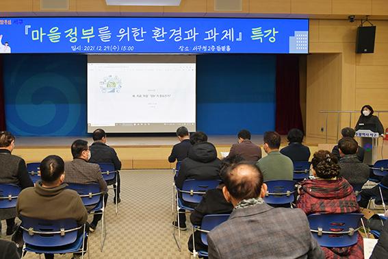 이번 특강은 서구형 자치모델 구축의 첫 단계로 추진 중인, 마을정부 구현을 위한 특강으로써 18개동 동장과 주민자치위원, 보장협의체위원 등을 대상으로 마을정부를 위한 환경과 과제라는 주제로 진행됐다.