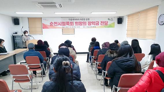 이번 행사는 회원들이 십시일반 모은 회비로 청소년 15명에게 각 30만원과 과일 1상자씩을 지난 12월 30일 순천시 드림스타트 회의실에서 ‘희망의 장학금 전달’행사를 갖고 전달했다.
