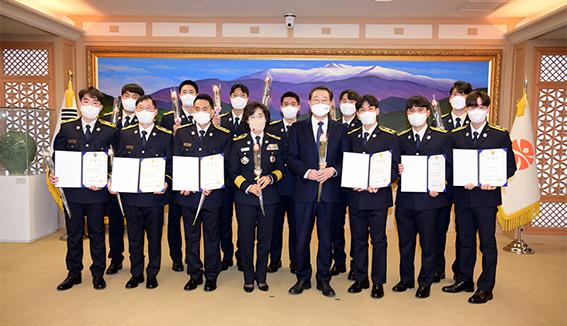 이용섭 시장은 “소방공무원에 신규 임용된 것을 진심으로 축하한다”며 “소방공무원이라는 사명감을 가지고 국민의 생명과 재산을 지키는 데에 최선을 다해달라”고 당부했다.