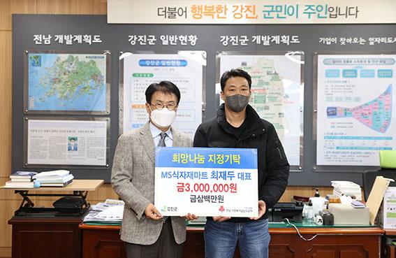 지난 7일 강진 MS식자재마트는 새해를 맞아 이웃돕기성금을 기탁하며 사회복지공동모금회 ‘희망2022 나눔캠페인’에 동참했다.