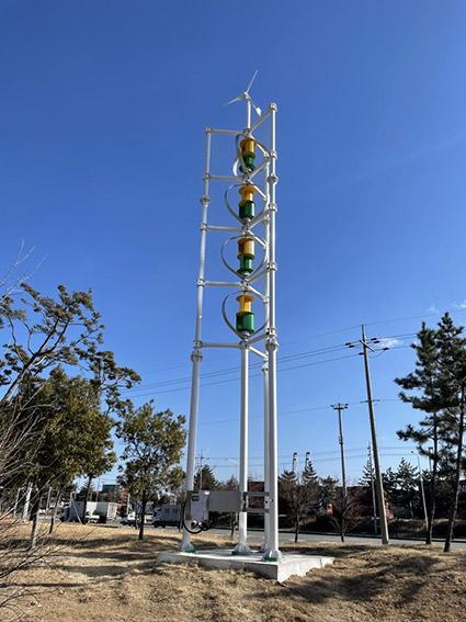 이번에 설치된 소형 풍력발전은 대형 발전기에 비해 최소가동 바람 세기 조건(4m/s→1.5m/s)과 소음을 개선한 것이다.