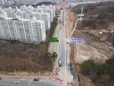 시는 현재 4차로 공사구간 중 조례마을 방향 2개 차로에서 한국전력공사의 고압선로 지중화 사업이 진행되고 있어 도로 정상개통은 어려운 여건이나, 주변에 공동주택 신규입주 및 설 명절 교통량 증가 등에 따른 교통체증이 예상되어 2차로를 우선 임시개통하기로 결정했다.
