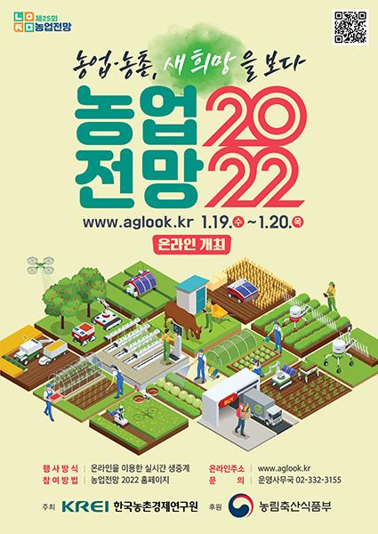한국농촌경제연구원은 오는 19~20일 양일 간 '농업전망 2022' 대회를 온라인으로 진행한다. (포스터 이미지=농촌경제연구원 제공) 2022.01.12
