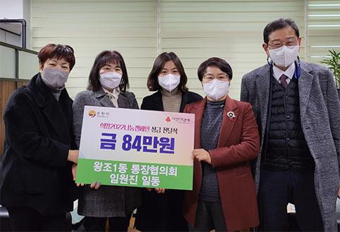 순천시 왕조1동 통장협의회 임원들이 이웃돕기 성금 84만원을 지난 13일 기탁하며 희망2022나눔캠페인 기부행렬에 동참했다.