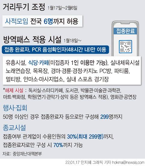 정부는 지난해 12월보다 유행 규모가 감소하고 의료 대응 여력이 커진 점, 방역패스에 대한 국민적 수용성 등을 감안해 이같이 결정했다는 입장이다.