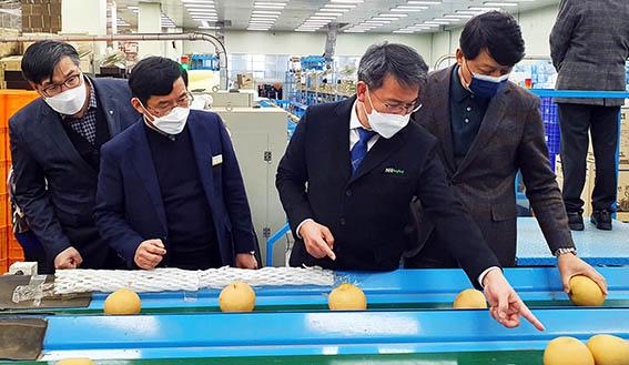 농협전남지역본부는 18일 나주시 왕곡면 농협 나주시조합공동사업법인의 배 선별장을 방문해 설 성수기를 앞둔 배 출하상황을 현지 점검하고 직원들을 격려했다.