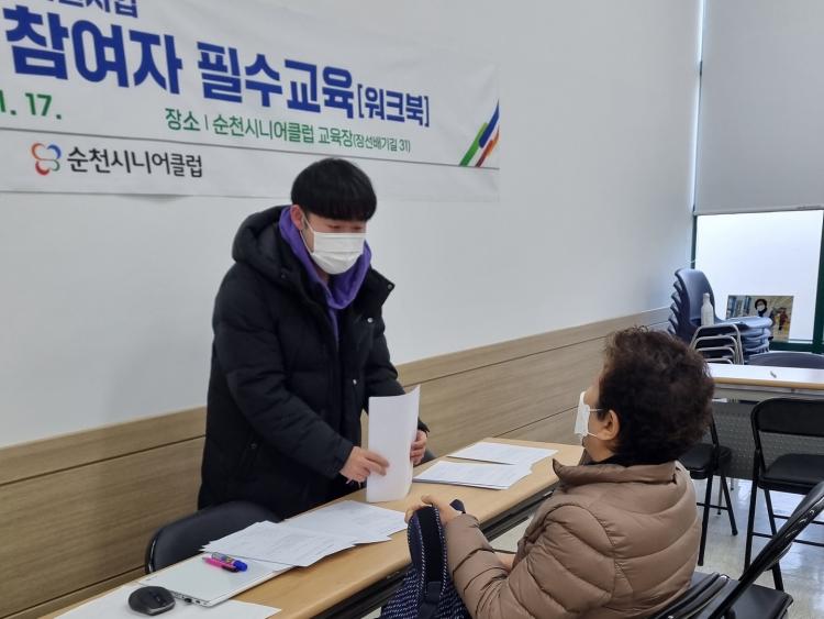 순천시니어클럽은 본격적인 노인일자리사업 시작에 앞서, 지난 10일부터 17일까지 원활하고 효율적인 노인일자리사업 추진 및 코로나19 예방을 위해 워크북 교육(안전사고 예방교육 및 사업안내 등)을 실시했다.