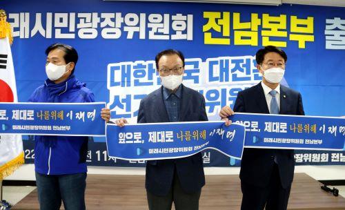 더불어민주당 선대위 미래시민광장위원회 전남본부가 20일 민주당 전남도당 대회의실에서 출범식을 갖고 대선 승리를 위한 본격적인 활동을 시작했다.