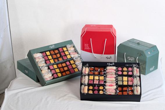 명절 선물로 인기몰이 중인 한과세트는 1.1kg 3만5000원, 1.2kg 5만원, 2.5kg 10만 원에 판매하고 있으며, 주문 및 구입문의는 (농)산다움주식회사또는 초록믿음(http://www.gangjin.center에 문의하면 된다.