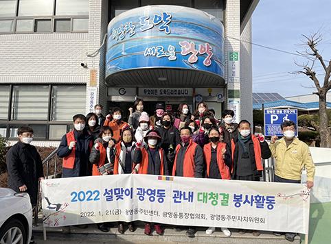 한편, 광영동은 작년 12월 27일 2021년을 마무리하며 통장협의회, 주민자치위원회, 직원 등 60여 명이 주요 도로변과 지역 내 공원 등에서 합동 방역과 대청결 봉사활동을 펼친 바 있다.