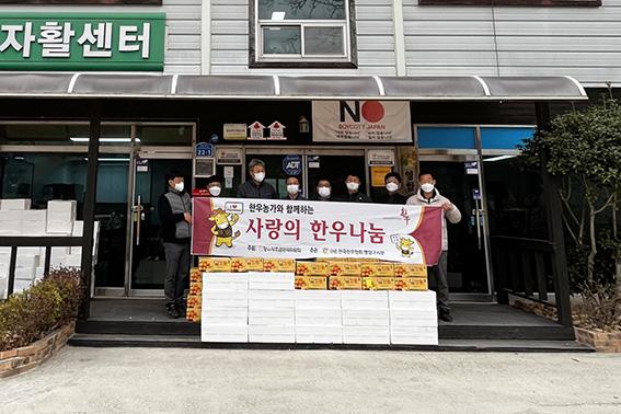 (사)전국한우협회영암군지부는 지난 25일 임인년 설 명절을 앞두고 영암지역자활센터에서 한우 불고기를 나누며 훈훈한 명절 분위기를 자아냈다.