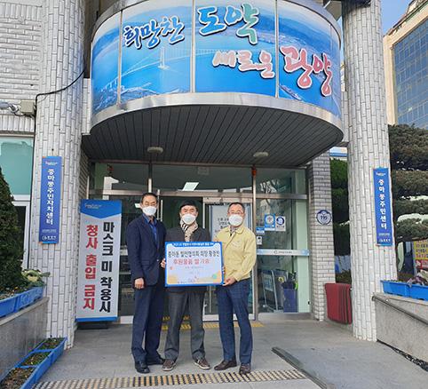 광양시 중마동 발전협의회 황광찬 회장이 중마동주민센터를 찾아 어려운 이웃을 위해 쌀 330kg을 기탁했다.