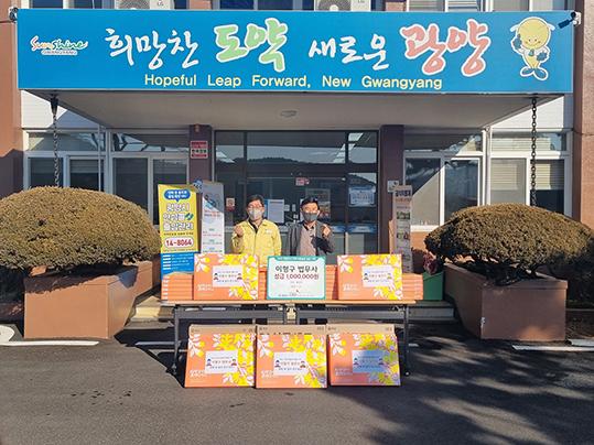 코로나19로 모두가 힘든 가운데 이형구 법무사는 어려운 이웃을 위해 100만 원 상당의 생필품을 광양사랑나눔복지재단을 통해 봉강면에 기탁해 훈훈함을 더하고 있다.