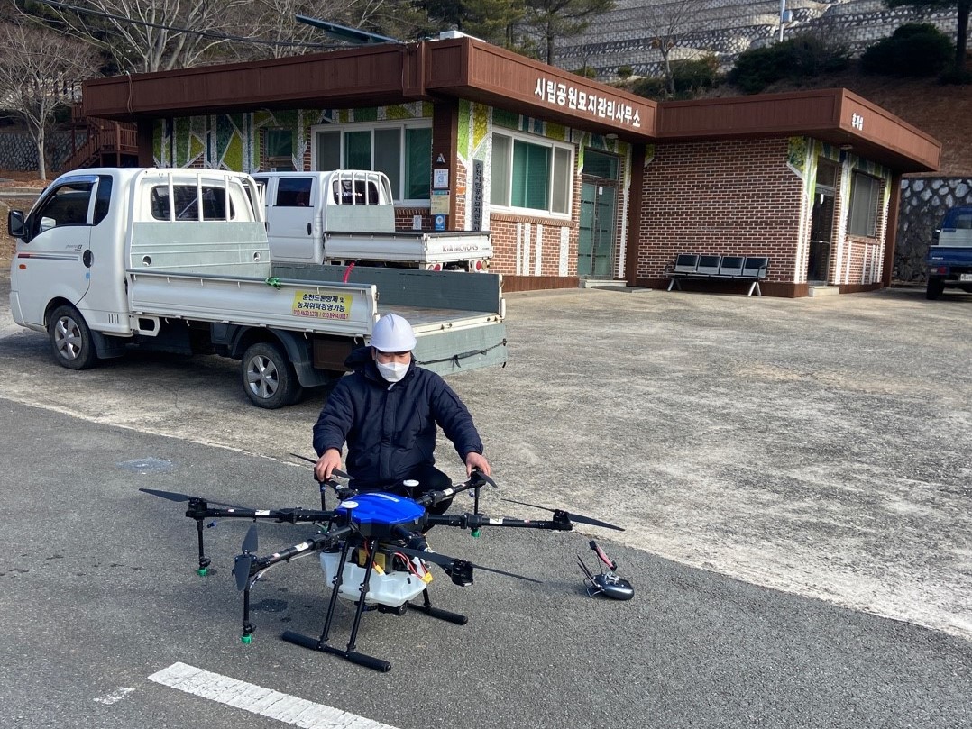 순천시 사회복지과 관계자는 “이번 오미크론 확산으로 추모공원에 대한 방역이 절실히 필요한 시점에 드론 방역소독을 실시해주어 감사드린다.”라며 “덕분에 성묘객들도 안심하고 성묘를 할 수 있을 것이다”고 말했다. /순천=조순익 기자