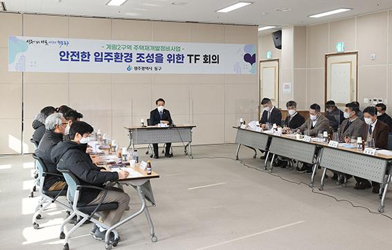 광주 동구는 계림2구역 주택재개발 아파트에 대한 안전한 입주환경을 조성하기 위해 ‘계림2구역 안전TF팀’을 꾸리고 지난 26일 첫 회의를 개최했다.