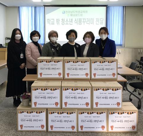 전남도학생교육원은 2022년 설 명절을 맞아 해남군 학교 밖 청소년지원센터를 방문해 10명의 학생들에게 식품꾸러미를 전달해 청소년들의 꿈을 응원하고 격려하였다.