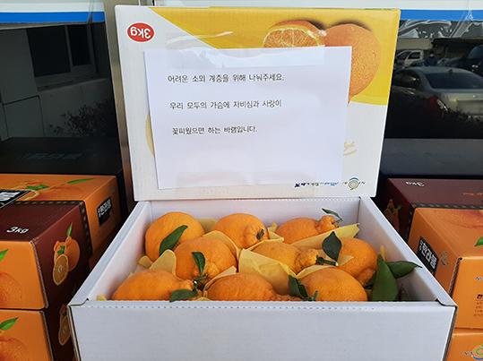 기부된 한라봉은 복지사각지대 대상자와 아동이 있는 취약계층 40가구에 전달됐다.