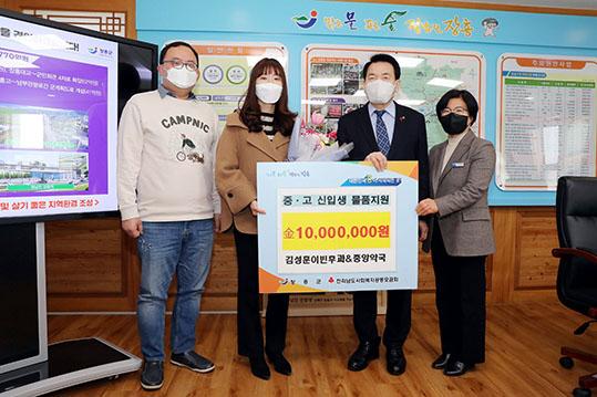 김성훈이비인후과와 중앙약국은 4일 저소득층 중·고등학교 신입생을 위해 써달라며 1000만원을 장흥군에 기탁했다.