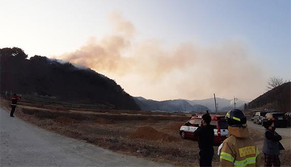 신고를 받은 산림 당국은 산림청 진화 헬기 1대, 소방차 2대, 산불진화대·소방관 등 60여 명이 투입됐다.