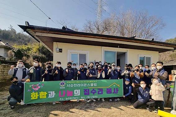 서순천라이온스크럽은 순천시 승주읍 지역 주거취약가구인 저소득 장애인 주택을 지난 9일부터 12일까지 난방,단열,창문,장판 도배 등 1000만원 상당의 집수리 봉사를 실시했다.