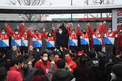 윤 후보는 공식선거운동 이튿날인 이날 광주 광산구 송정매일시장을 찾아 유세를 펼쳤다.
