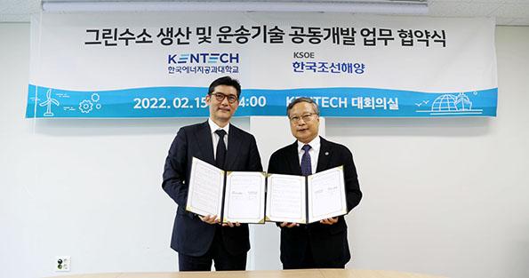 한국에너지공과대학교(이하 한국에너지공대)와 한국조선해양은 15일 오후 2시 나주혁신도시에서 친환경 미래 에너지 기술개발 협력을 위한 업무협약을 체결했다고 밝혔다.