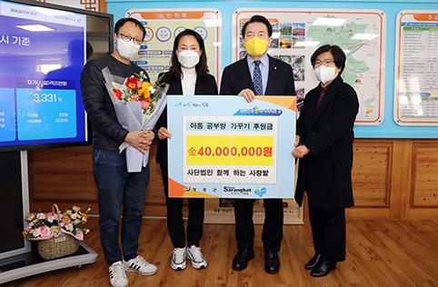 장흥군은 16일 (사)함께하는사랑밭에서 4000만원의 아동 공부방 가꾸기 사업 후원금을 기탁했다고 밝혔다.