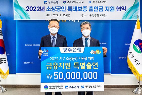 광주은행은 코로나19 장기화로 경영위기를 겪고 있는 서구지역 소상공인을 지원하기 위해 5000만원을 특별출연했으며 총 18억원의 특례보증대출을 지원하기로 했다.