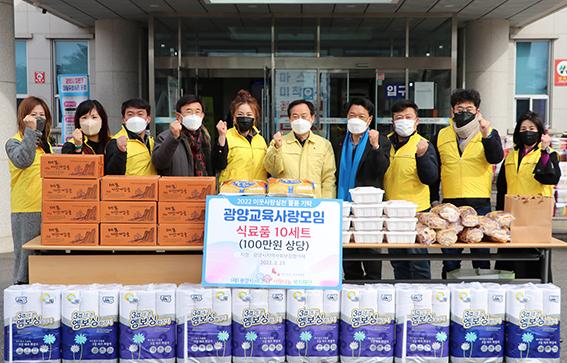 광양시 광양읍 ‘광양교육사랑모임’은 지난 23일 광양읍사무소 현관에서 (재)광양시사랑나눔복지재단을 통해 광양읍 지역사회보장협의체에 식료품 꾸러미 10세트(100만 원 상당)를 전달했다.