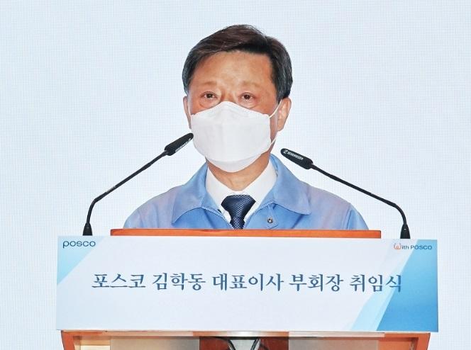 김학동 부회장은 취임사를 통해 “새롭게 탄생한 철강회사 포스코는 안전과 친환경을 근간으로 세계 최고의 경쟁력을 갖춘 철강사, 직원이 행복하고 고객사, 공급사, 지역사회 등 이해관계자와 더불어 함께 발전하는 기업시민 철강사가 되어야 한다”고 강조하고, “이를 통해 전 임직원이 힘을 합쳐 ‘지속가능한 100년 철강기업 포스코’를 만들어 나아가자”고 당부했다.