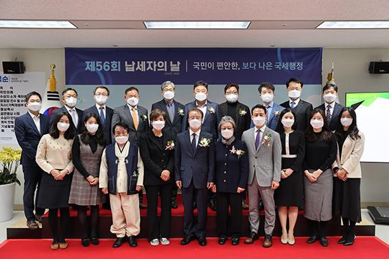 광주지방국세청은 3일 오전 정부광주합동청사 3층 세미나실에서 이판식 청장과 모범납세자, 아름다운 납세자, 세정협조자 등 40여명이 참석한 가운데 기념식을 가졌다. /광주국세청 제공 2022.03.03.