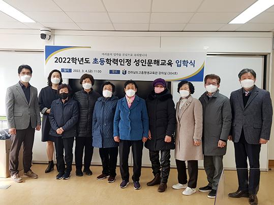 전남도고흥평생교육관은 지난 3일 중학, 4일 초등 입학식을 시작으로 2022학년도 초등·중학 학력인정 성인문해 교육과정을 개강했다.