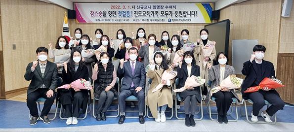 이날 수여식에서는 교직을 향해 첫걸음을 내딛는 신규교사들에게 임명장을 수여하고, 진도교육가족 모두의 축하와 응원이 담긴 꽃다발을 전달했다. 더불어 신규교사와 진도교육지원청 직원이 함께하는 기념사진 촬영을 통해 신규교사의 첫 출발을 보다 의미 있고 풍성하게 했다.